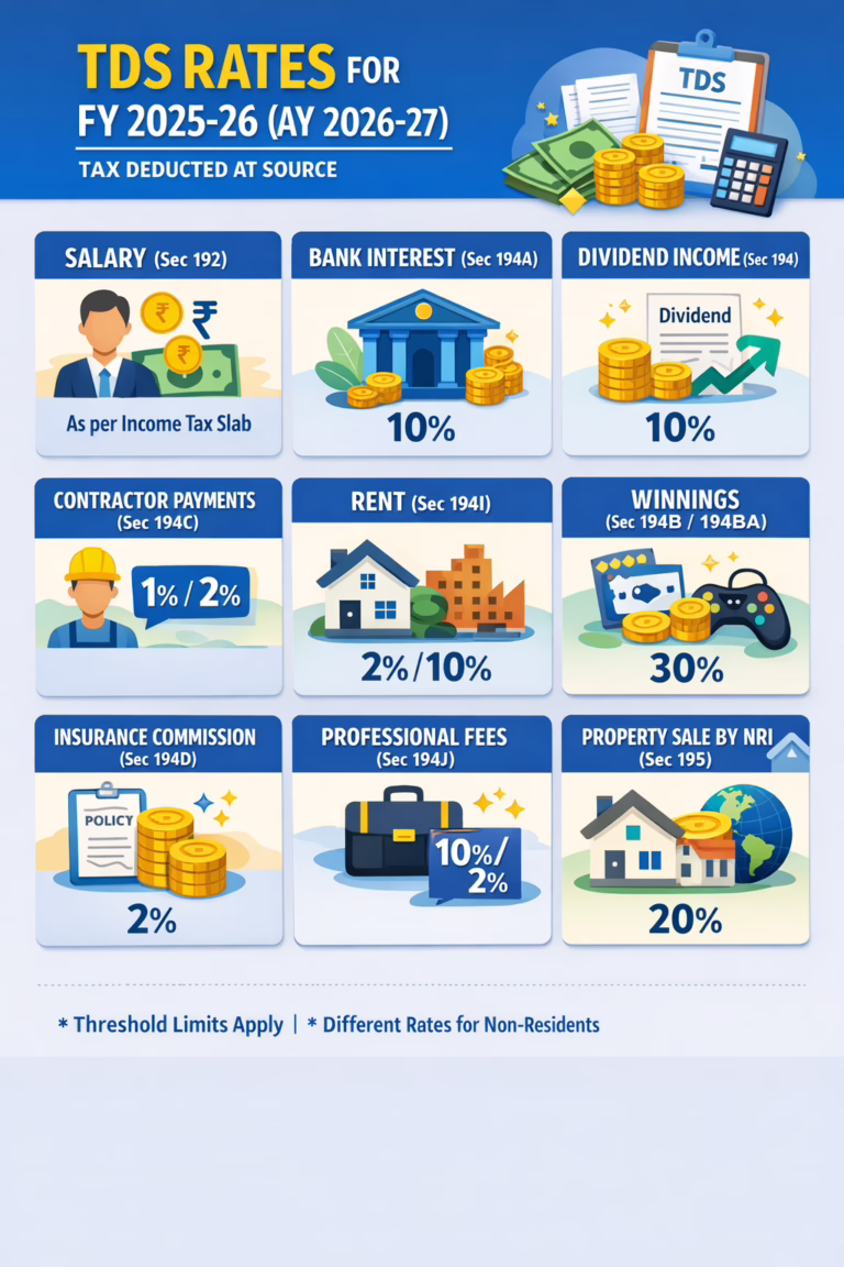 Read More →For the Financial Year 2025-26 (Assessment Year 2026-27), Below is a summary of the current TDS rates for...